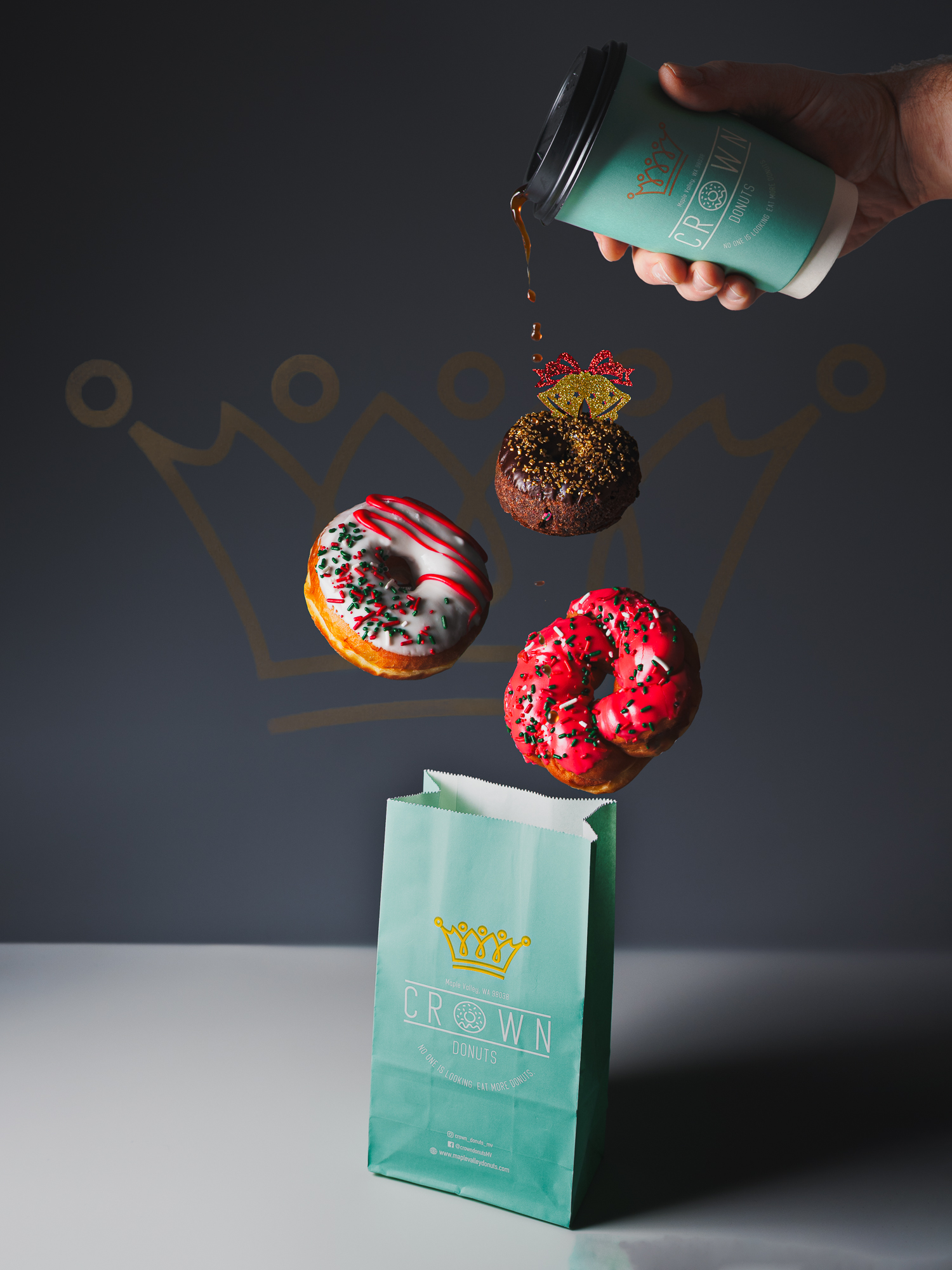 Throughout December, we collaborated with Crown Donuts on a series of Wednesday features, creating reels and images that focused exclusively on their products. The content showcased their donuts in both evergreen, everyday compositions and festive, holiday-inspired scenes, highlighting texture, color, and seasonal appeal while creating visuals that felt warm, crave-worthy, and versatile for ongoing use.